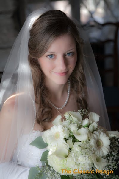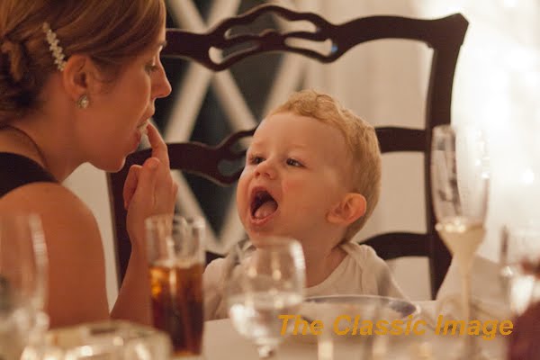 This image reminds me of an old time photo illustration or a Norman Rockwell print. The room is full of activity as the bridesmaids are all busy getting the bride ready. I love how their little boy is standing on his tip toes in his diaper and socks with his hands clasped behind his back looking at his mother and himself in the mirror. It is such a wonderfully precious moment in time.