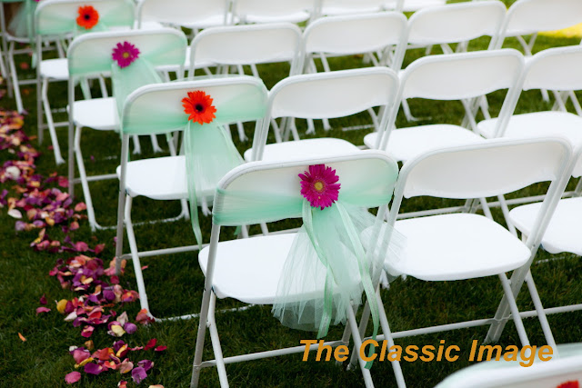 Omayra’s dad was unable to make the wedding, so to observe that fact and to give a gesture of acknowledgement as to how much she missed him and his importance in her day, she stopped to a put a flower in a chair reserved for him.