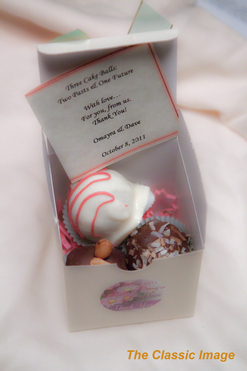 The favors were so awesome. Chocolate covered cakes. Each with a story and a meaning.